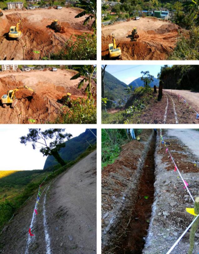 場平土石方開挖、回填、防撞墻定位放線、防撞墻基礎(chǔ)開挖、抗滑樁擋土墻基礎(chǔ)開挖